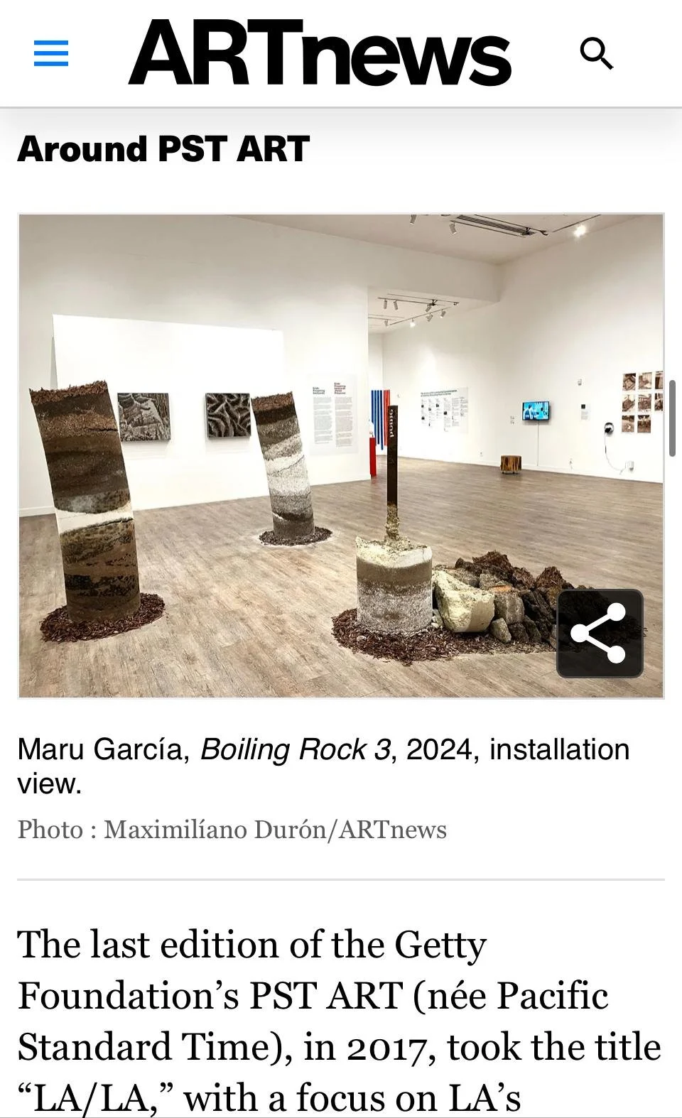 Maru has participated in conferences, solo and group exhibitions in North America, Europe, and Asia. Her work has expanded to public art as well, having produced a large-scale digital piece for the California Natural Resources Agency and becoming a finalist for the Puente Hills Landfill Park sculpture commissioned by the Los Angeles Arts and Culture Department. She was an artist in residence in the National Center of Genetic Resources in Mexico and has received awards from the New York Foundation for the Arts ‘Anonymous Was a Woman Environmental Art Grant’, the California Environmental Protection Agency (CalEPA) Environmental Justice Grant, the California Arts Council, Los Angeles Sustainability Collaborative, Clifton Webb Scholarship for the Arts, and Fundación Jumex. She was a 2020- 2021 Sci-Art Ambassador for Supercollider and worked at the Getty Research Institute in the 2019-2020 Scholar program titled “Art and Ecology.” Maru was a 2021-2022 artist in residence at 18th Street Arts Center, and was a Getty Foundation grant recipient for the exhibition “Sink: places we call home” with Self Help Graphics & Art, presented in the Pacific Standard Time Art x Science x LA in 2024. She has collaborated with Metabolic Studio since 2023 and is an Associate Research Scientist in Mineral Sciences at the Natural History Museum of Los Angeles County.