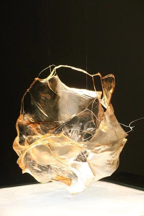 Dimensions: 8 x 8 x 7 in. Medium: sculpture of bacterial cellulose, and wire.